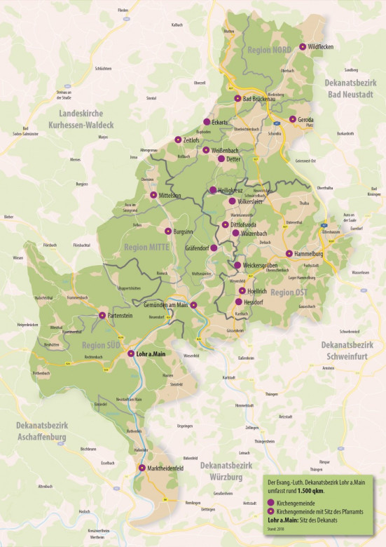 Zur Region Ost des Dekanatsbezirks Lohr a. Main gehören die Kirchengemeinden